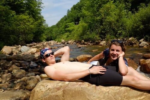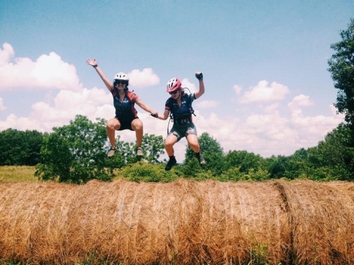 A cohort of starry eyed optimistic 20-somethings made their way from Maine to California, powered by gatorade, church casseroles and a feeling of uninhibited freedom. It wasn’t long into this journey—about 100 miles—that an infatuation in one another really took hold. What began as a summer crush grew in depth over the following 3,900 miles. That summer was a relationship incubator. When every day was a shared adventure, 3 months together could have been a year.